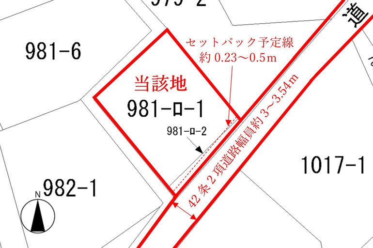接道状況東南側公道(2項道路 幅員約3〜3.54m) に約10m接道