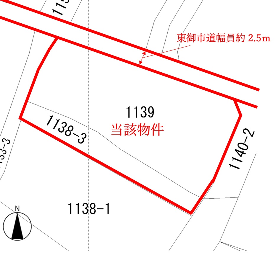 | 接道状況 | 北側公道(幅員約2.3〜2.5m)に約24m接道 |