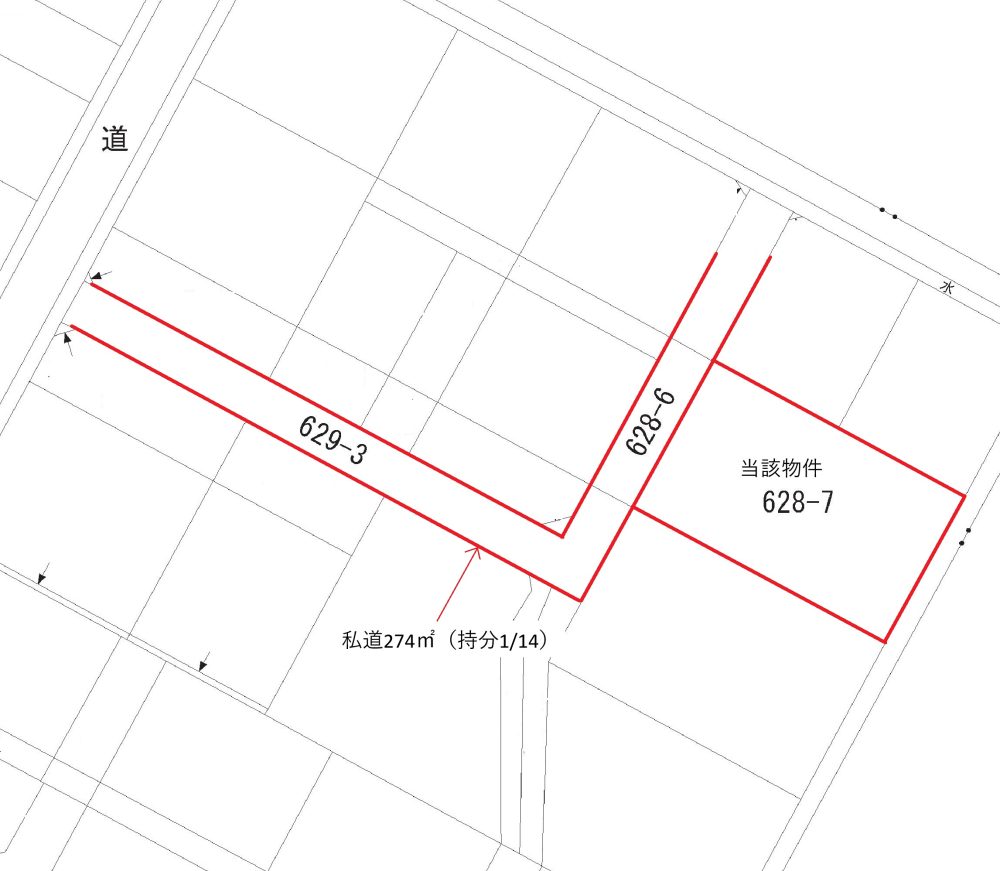 | 接道状況 | ⻄側私道(幅員約4m)に約13m接道 |